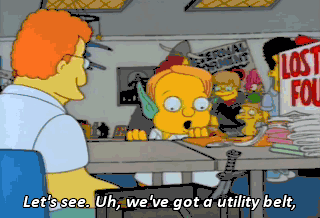 Let's see. Uh, we've got a utility belt, a couple of tricorders, a light saber-- Sorry, kid. Uh-uh, uh-uh-uh. Mm, uh-uh. Hey, Bart dude ! Hey, Otto man !