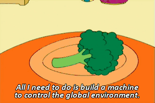 All I need to do is build a machine to control the global environment. Forecast for tomorrow, a few sprinkles of genius with a chance of doom!