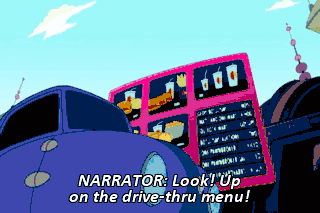 NARRATOR: Look! Up on the drive-thru menu! It's Captain Mega Meat and his young ward, Bottomless Boy. Hurry, Captain! A skinny kid needs our help. Super-size me! (BELCHING)