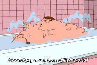 Good-bye, cruel, bone-filled world!