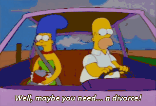 Well, maybe you need... a divorce! Call the divorce specialists now for a consultation and free tote bag. Ooh, there's the turn! Oh! Oh, easy!
