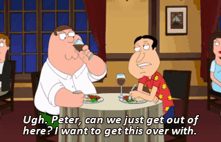 Ugh. Peter, can we just get out of here? I want to get this over with.