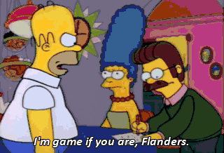 I'm game if you are, Flanders. Good gravy, what have I done ? Keep your left arm straight, Bart. Rotate your shoulders. Dad ! Look, son, all I'm asking is that you try. Okay, I'll try.