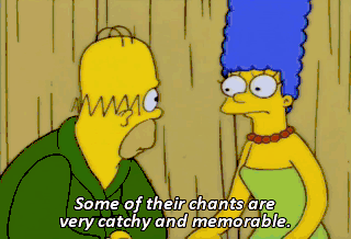 Some of their chants are very catchy and memorable. - You grabbed me in the car! - Oh, that. No, I was just grabbing a gummi Venus de Milo that got stuck to your pants.