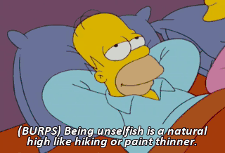 (BURPS) Being unselfish is a natural high like hiking or paint thinner.