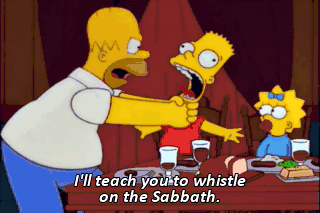 I'll teach you to whistle on the Sabbath. They go to pieces over nothing. They're perfect for reality TV. Where's that kid with my latte?