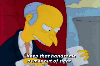 "Keep that handsome owner out of sight. He's distracting the female employees." Smithers? Got me, sir.