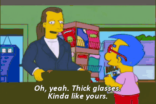 Oh, yeah. Thick glasses. Kinda like yours. So how many you need-- 500, 600? 600 sounds good. Aw, that's too bad. There's a price break at a thousand. Oh, man!