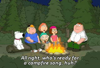 All right, who's ready for a campfire song, huh? Oh, come on, Dad, that's lame. It's not lame, Meg. Look, those people over there are having a good time.