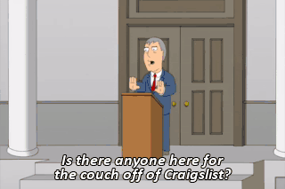 Is there anyone here for the couch off of Craigslist? I am. Oh, good, come on in. That is the picture from Craigslist. No way it is. It is. No way it is.