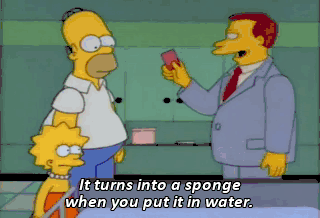 It turns into a sponge when you put it in water. Ooh, classy. I'd like to talk to you about bringing legal action...