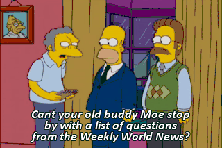 Cant your old buddy Moe stop by with a list of questions from the Weekly World News? Number one, Sara, is it true you shoplifted a kayak? I'll have you know she pays full price for all her watercraft.