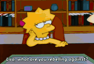 Lisa, what are you rebelling against? What do you got? ...and she goes "Lisa told Hoover to shove it." And I'm, like, "No way--" Hey, Lisa, man.