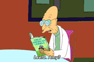 Leela. Amy? Bender. Have you seen my body? I think the Professor's in it. Yeah, he said something about running away. Then he ran away. What? Whither?