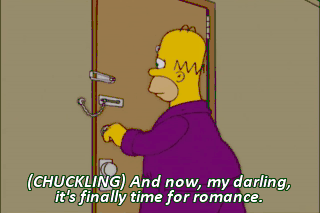 (CHUCKLING) And now, my darling, it's finally time for romance. But before the intercourse, the dinner course! Busted! You guys lied to us! You probably do this all the time.