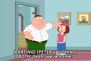 (FARTING) (PETER LAUGHING) BOTH: Yeah, we're home! (LAUGHING) Well, now what do we do about this guy? We got two Brians in our universe now. Don't worry. I don't plan to stay in Quahog.