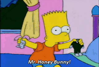 Mr. Honey Bunny! Quiet down, Bart! Bart, just get out of here. Hey, it's a free country. You get out.