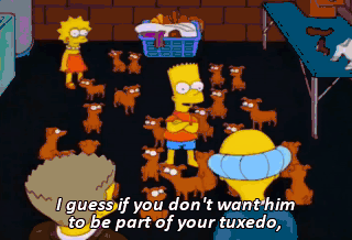 I guess if you don't want him to be part of your tuxedo, you'll have to let the other dogs go too. Nice try. Come on, Little Monty. Stand up. Come on. Stand up. Do your trick.