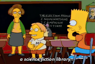a science fiction library... featuring an ABC of the overlords of the genre: Asimov, Baxter, Clarke--