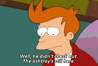 Well, he didn't check out. The ashtray's still here. Look, Nibbler's caught the scent of vodka and motor oil. Go, boy. Follow that stench. I'm hallucinating this, right? No, Bender.