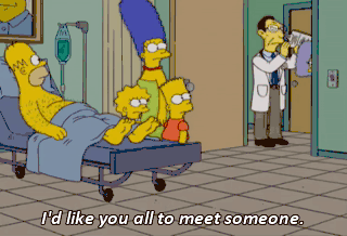 I'd like you all to meet someone. Introducing Ling Bouvier! (GASPS) Selma, she's beautiful. (GURGLING) This is Homer, your daddy. Without him, I wouldn't have you.