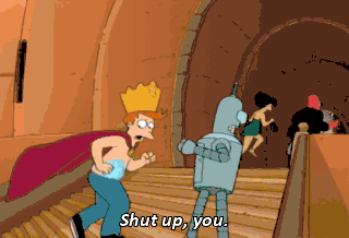 Shut up, you. Let us in! Fry must die so that Bont may live. What am I going to do? We've got to get the emperor out of your body before they kill you. Relax, Fry.