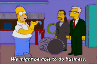 We might be able to do business. We'll need to take some photographs. Hey, where you going with that? Wait a minute. No investor could bend like that! They're chiropractors!
