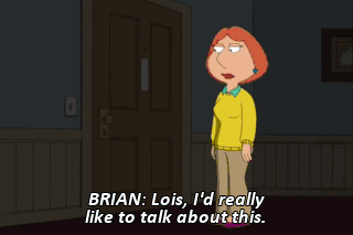 BRIAN: Lois, I'd really like to talk about this. - No! Stop scratching the door! - Okay.