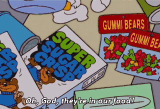 Oh, God, they're in our food! Teddy Grahams, Gummi Bears!