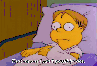 That means I can't possibly race. You're lucky to be alive. Save your palliative cliches for the next poor sap, Doctor. Is it okay to visit? Of course.