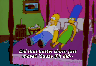 Did that butter churn just move? 'Cause if it did-- What's wrong with us, Homer? Have we lost the spark already? No, no, honey. Maybe this will help. Hey! Look at that! Oh, good Lord!