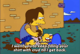 I want you to keep filling your shirt with crud till I get back. Y-Yes, sir.