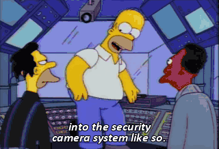 into the security camera system like so. Then I insert this old videotape of us working... on a continuous loop.