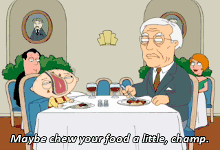 Maybe chew your food a little, champ.