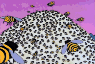 Hey! Get off my sugar! Bad bees. Bad! Ow! Ow! They're defending themselves somehow.