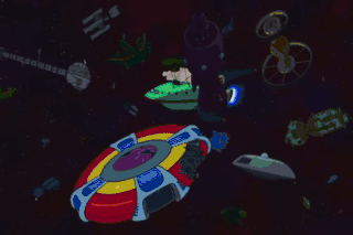 It's a spaceship graveyard. Why did we have to come here at night? Look at all these famous lost ships. There's the Garmin! And the TomTom! Over there! It's the original Planet Express ship!
