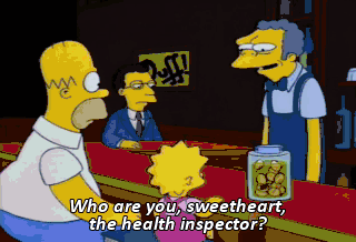 Who are you, sweetheart, the health inspector? No, but I am. Uh, here, have a margarita. Uh, that's a parasol.