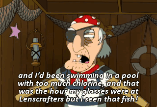 and I'd been swimming in a pool with too much chlorine, and that was the hour my glasses were at Lenscrafters but I seen that fish!