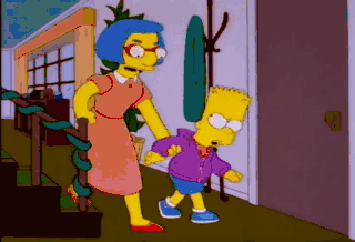 Okay, okay, okay. I won't bug Milhouse. Out! But, well, Mrs. Van Houten, this is gonna sound kinda dumb, but can I hang out with you while you do mom stuff?