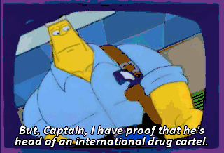 But, Captain, I have proof that he's head of an international drug cartel. I don't want to hear it, McBain ! You're out of here ! That makes two of us.