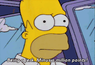 Being a jerk. Minus a million points! D'oh! One more wrong answer,