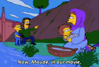 Now, Maude, in our movie, you lay baby Moses in the basket, then put it among the reeds. Okay? Lights, camera, act-didilly-dotilly- doodilly-action, jackson!
