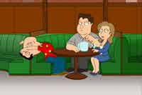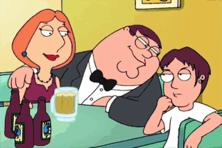 It's the cops! Run! Hold it, you two. Aren't you a little old to be drinking illegally? Uh, uh... Lois, look over there! Run!