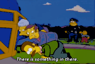 There is something in there. Feels like a Hefty Bag full of meat. We're trapped!