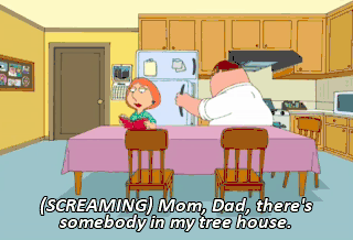 (SCREAMING) Mom, Dad, there's somebody in my tree house.