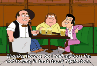 Thanks, Horace. So I told my boss I'm not staying in that stupid toy factory. I'm gonna go places.