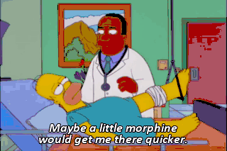 Maybe a little morphine would get me there quicker. So many times we've seen our father go under the knife. One more and I get a free hysterectomy.