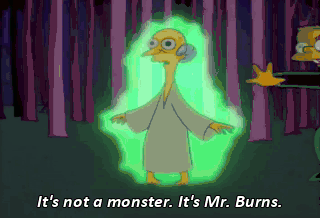 It's not a monster. It's Mr. Burns. Oh, it's Mr. Burns. Kill it! Kill it!