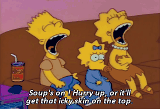 Soup's on ! Hurry up, or it'll get that icky skin on the top.