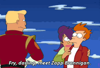 Fry, darling, meet Zapp Brannigan. Huh? How do you do? Hmm.